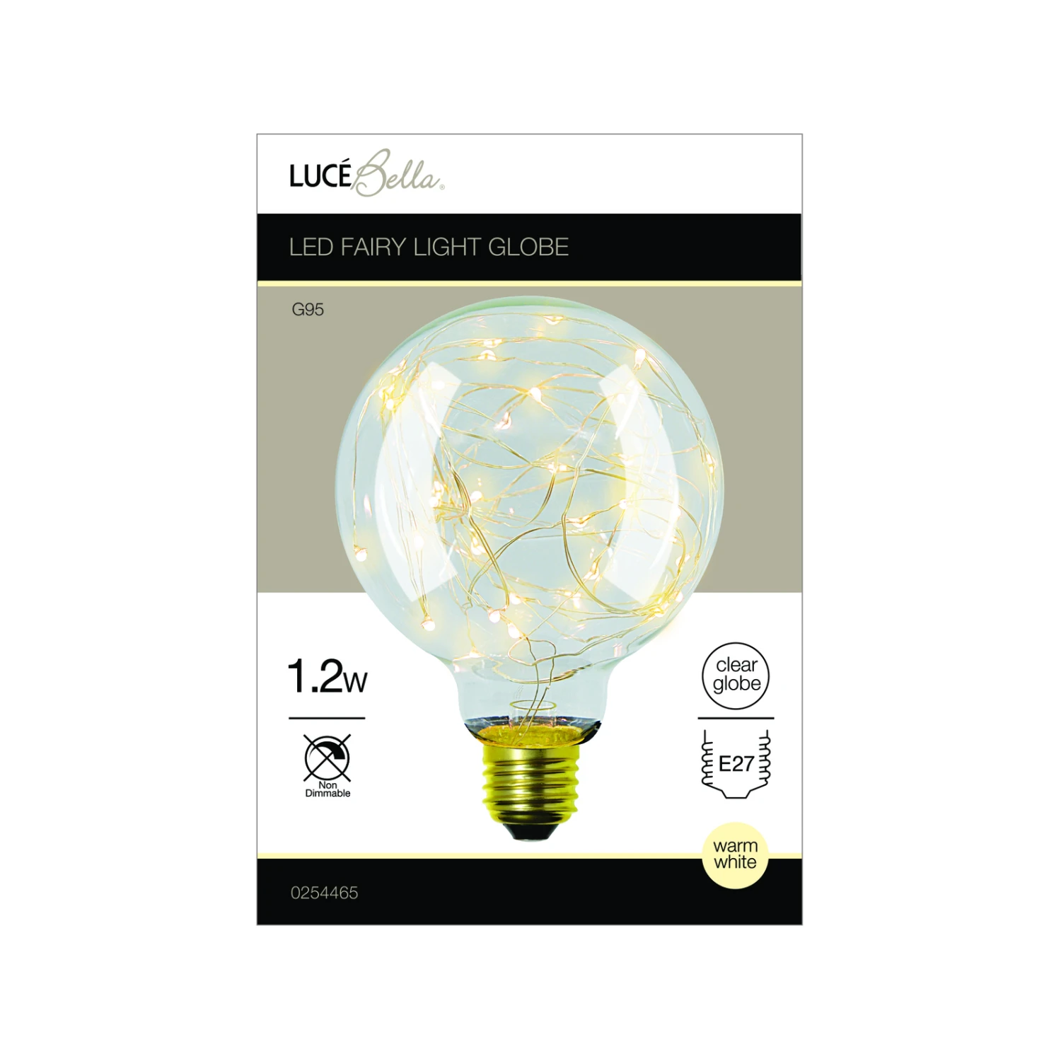 Light up your home with the Luce Bella G95 Fairy Light E27 LED warm White 1.2W Globe. This decorative globe will bring warmth to any room of the home, ideal as a feature globe in a table lamp.