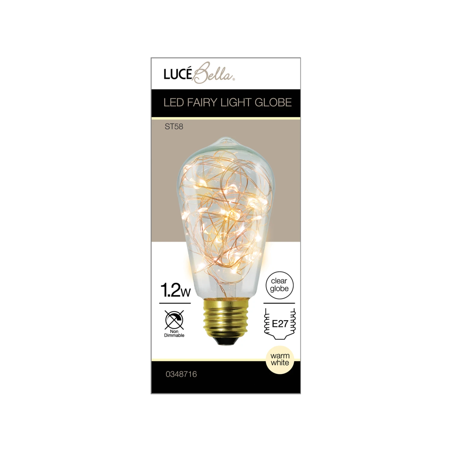 Light up your home with the Luce Bella LED ST58 Fairy Light Globe, ES 1.2W Warm White.This decorative globe will bring warmth to any room of the home, and is ideal as a feature globe in a table lamp.