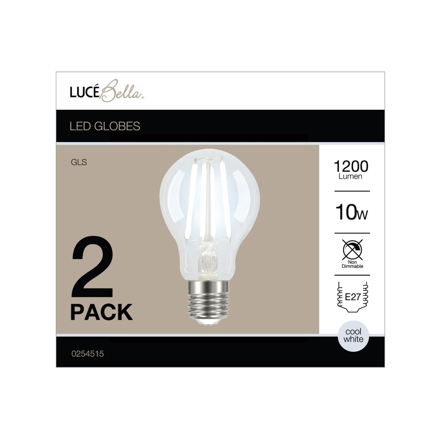 TheLuce Bella GLS Filament E27 LED 1200 Lumen Cool White 10W Globe, provides ambient lighting that will enhance the atmosphere of any area.This bulb has a colour temperature of 4000K, providing a bright white light, that’s ideal in kitchens, bathrooms, and workspaces2 Pack