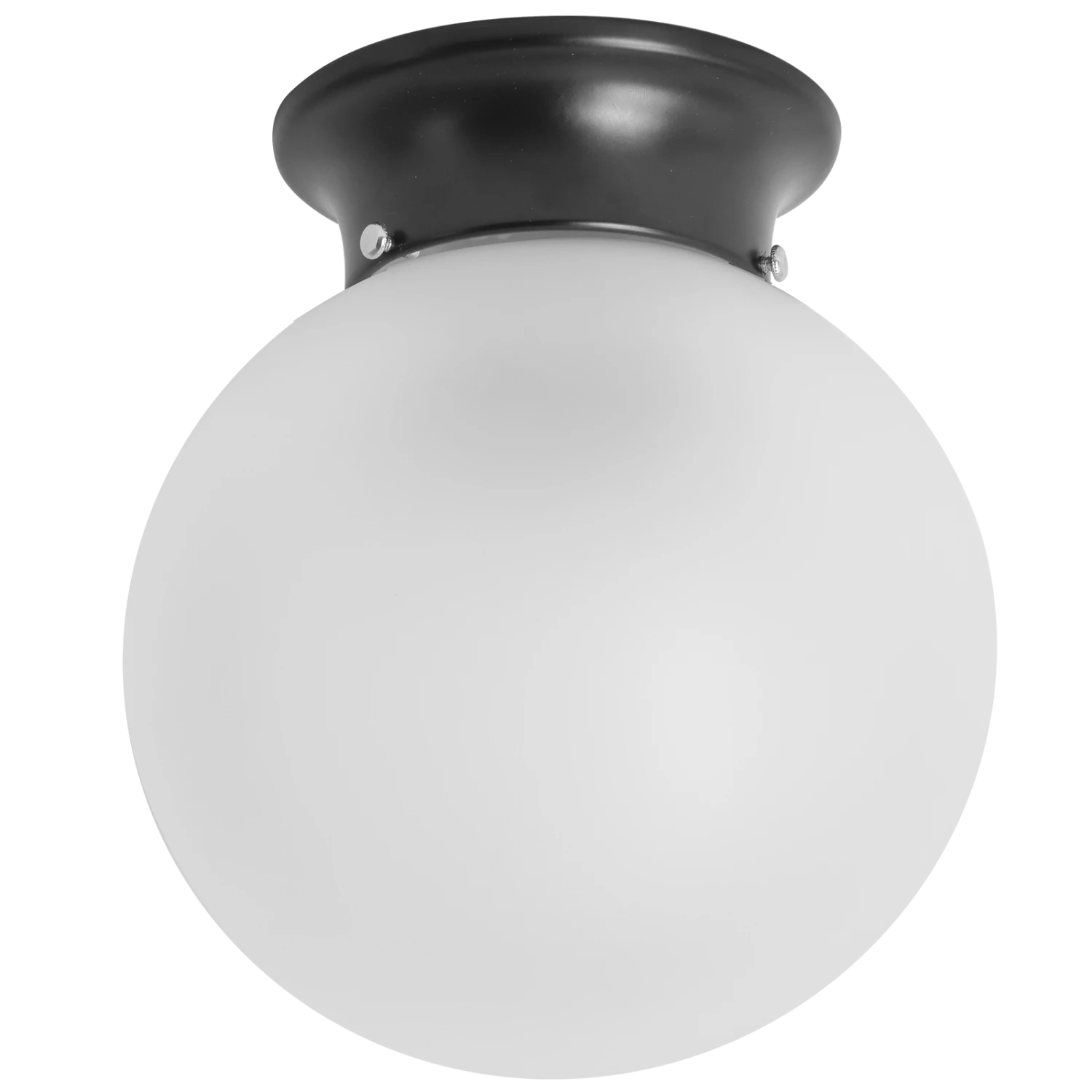 - Frosted glass shade with matte black metal skirt